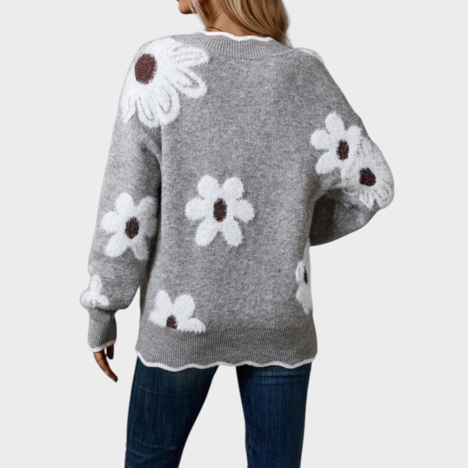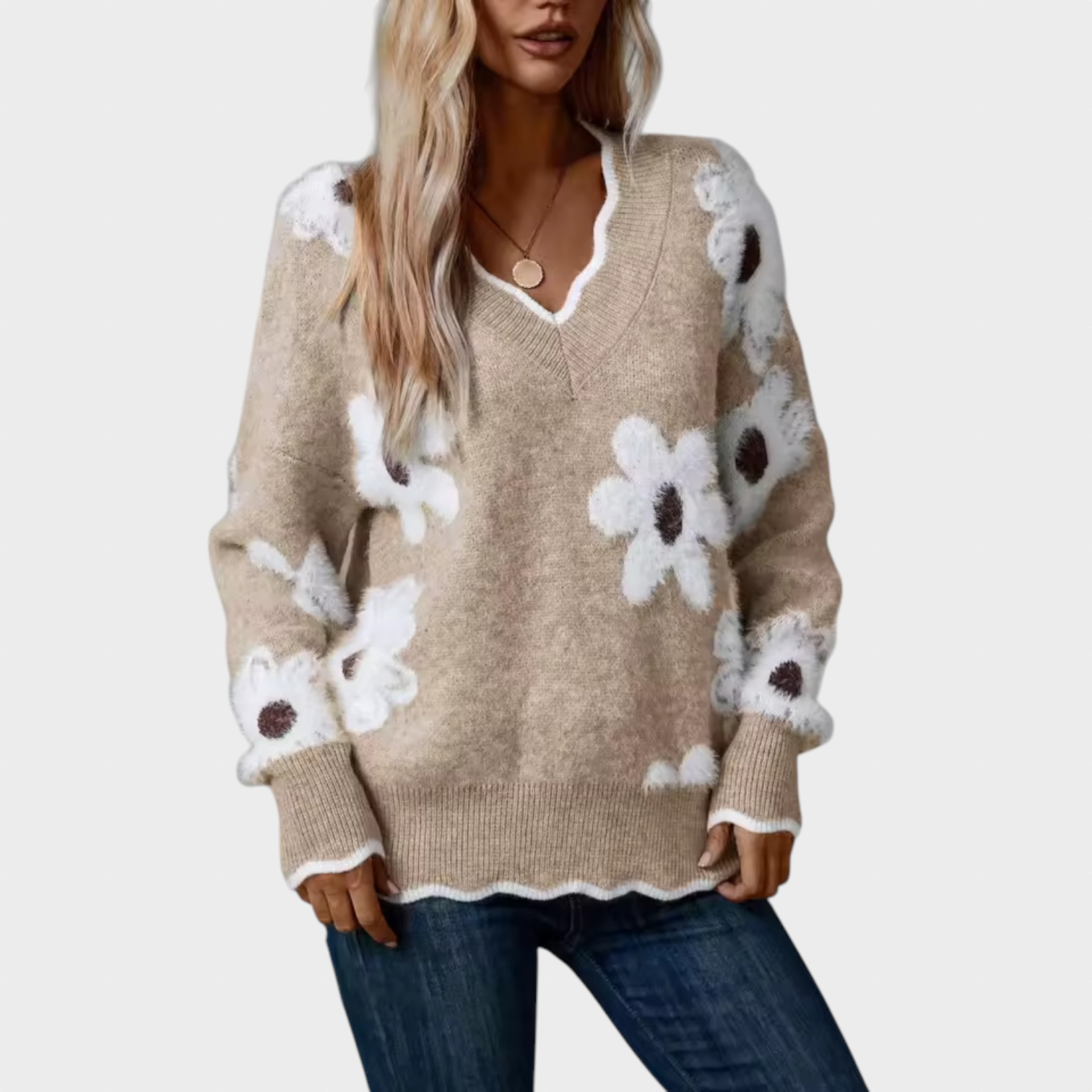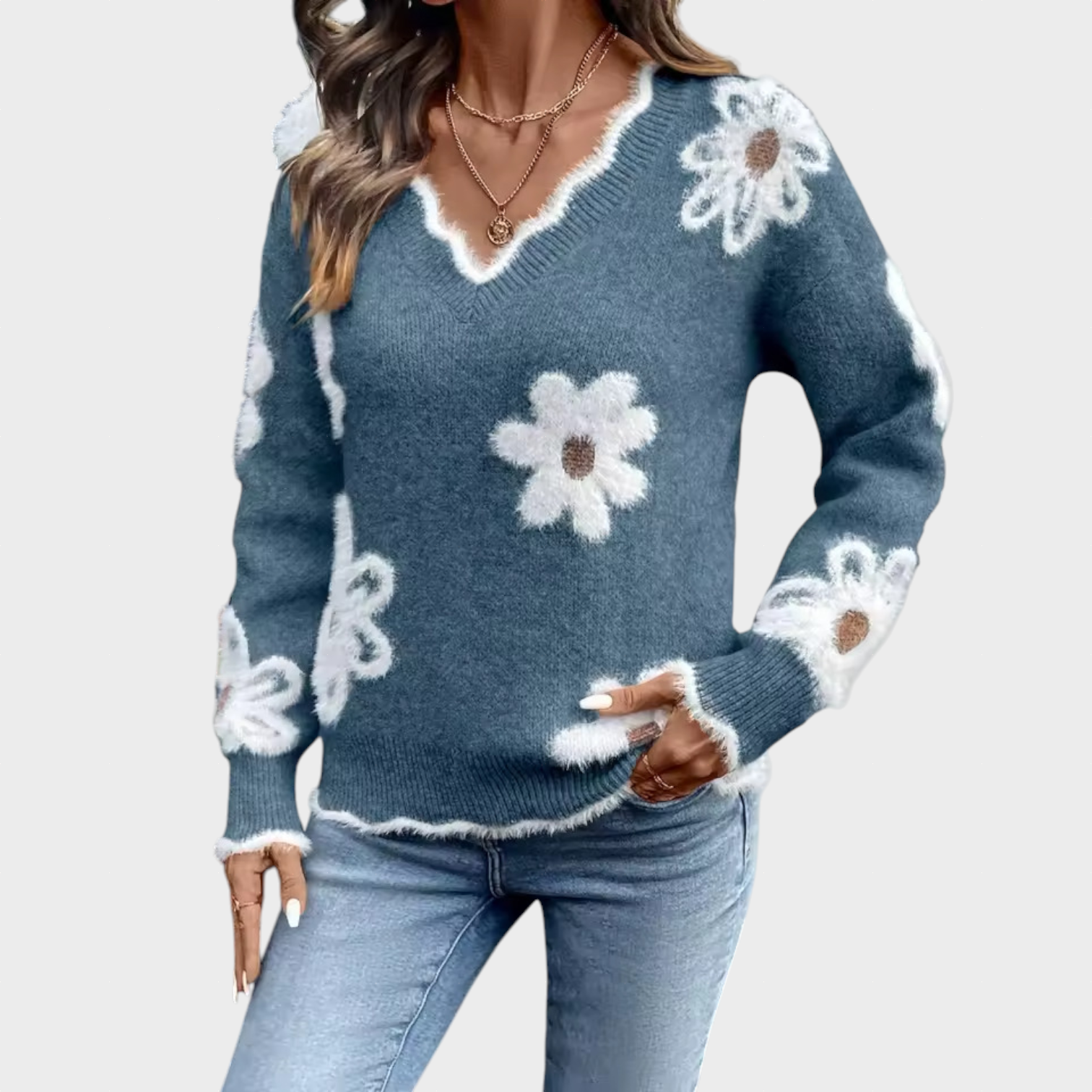 Andreea - Pulover cu decolteu în V și imprimeu floral