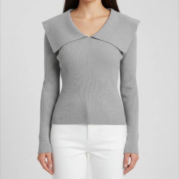 Pulover cu decolteu în V și guler drapat