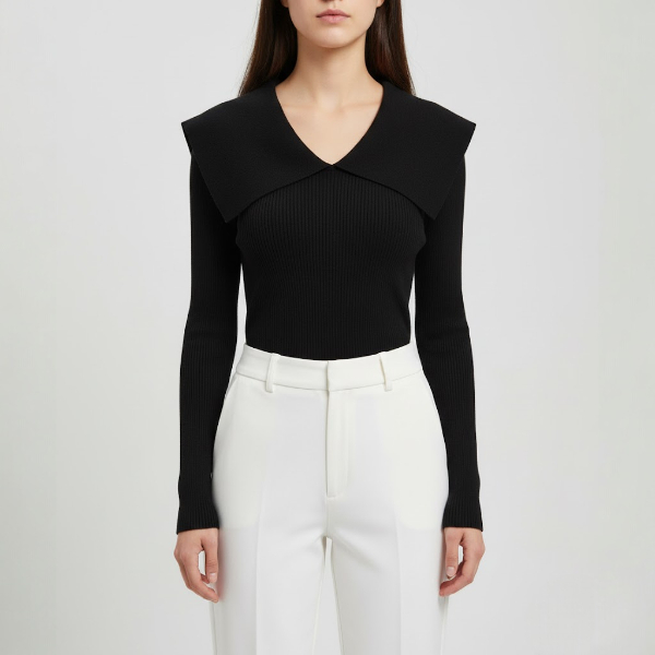 Stil Minimalist și Feminin: Puloverul cu Guler Drapat în V