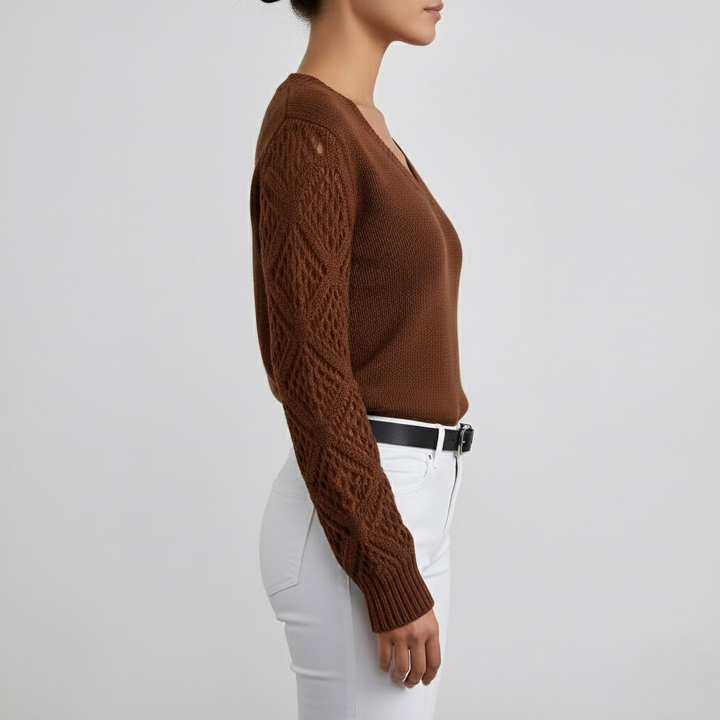 Rafinament și Feminitate în Fiecare Detaliu: Puloverul cu Mâneci Ajurate
