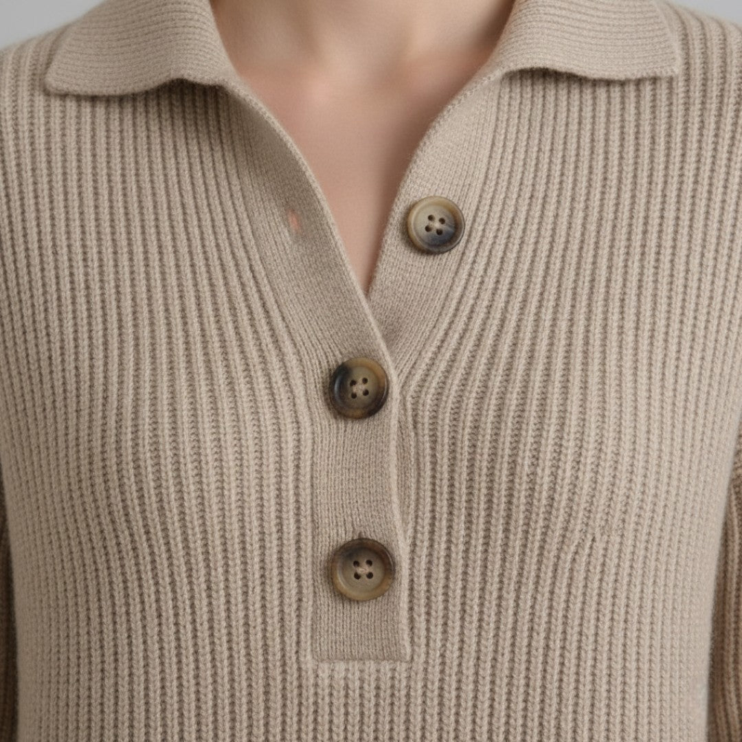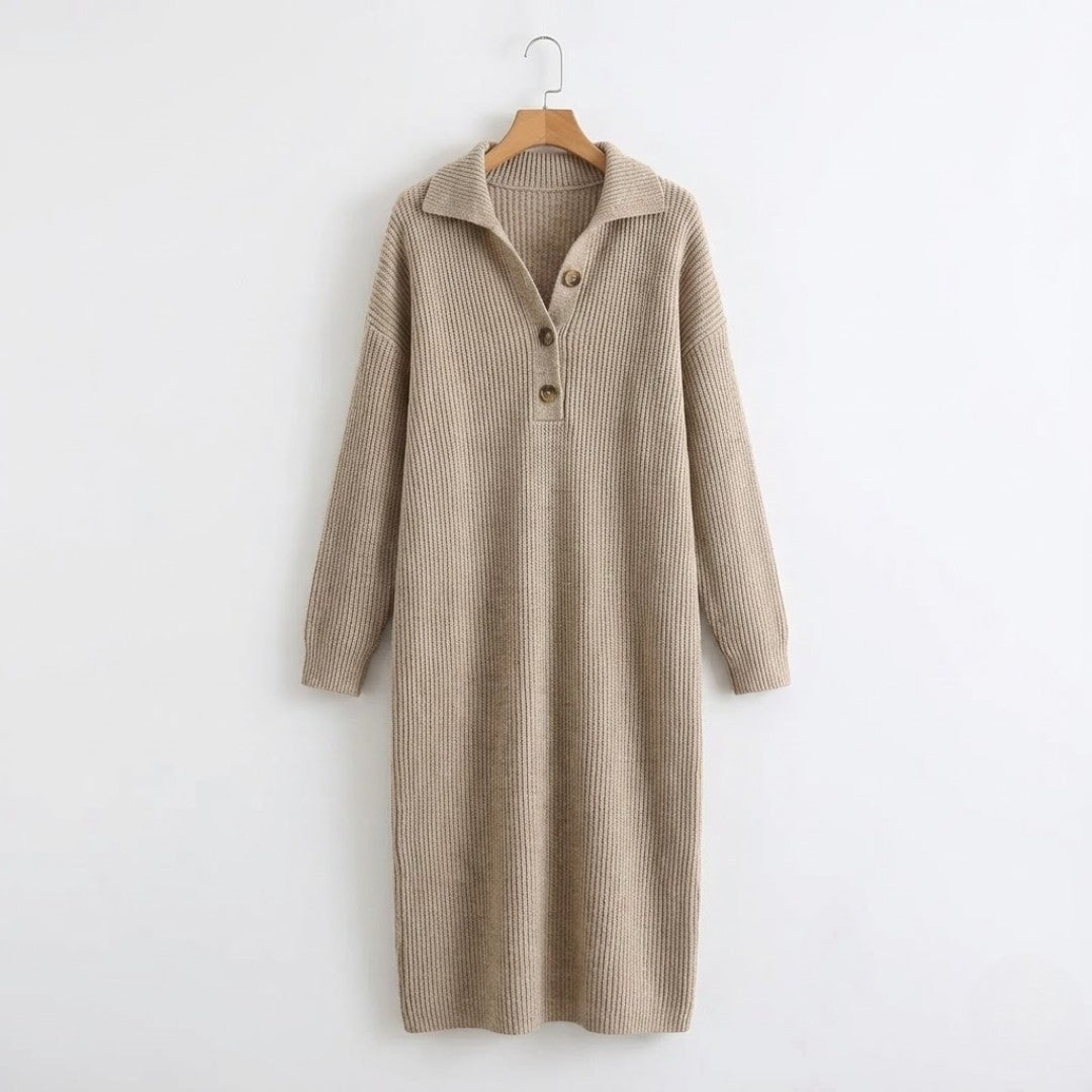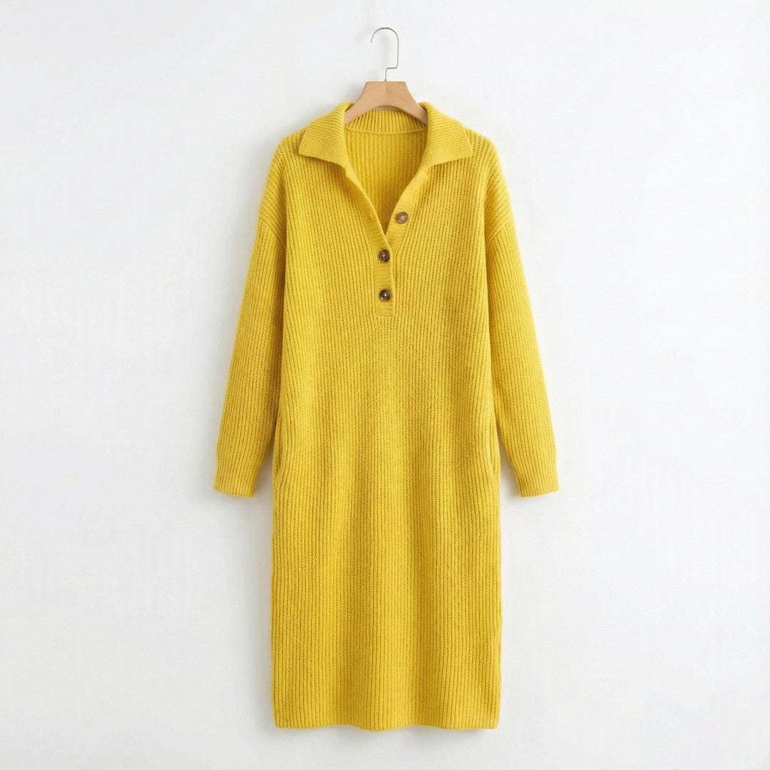 Alina - Rochie confortabilă din tricot este definiția stilului inteligent pentru sezonul rece. Confecționată dintr-un tricot moale, această rochie lungă combină un design clasic (guler polo și nasturi decorativi) cu o croială lejeră și măgulitoare. Este piesa perfectă pentru a fi elegantă și relaxată în orice moment al zilei.